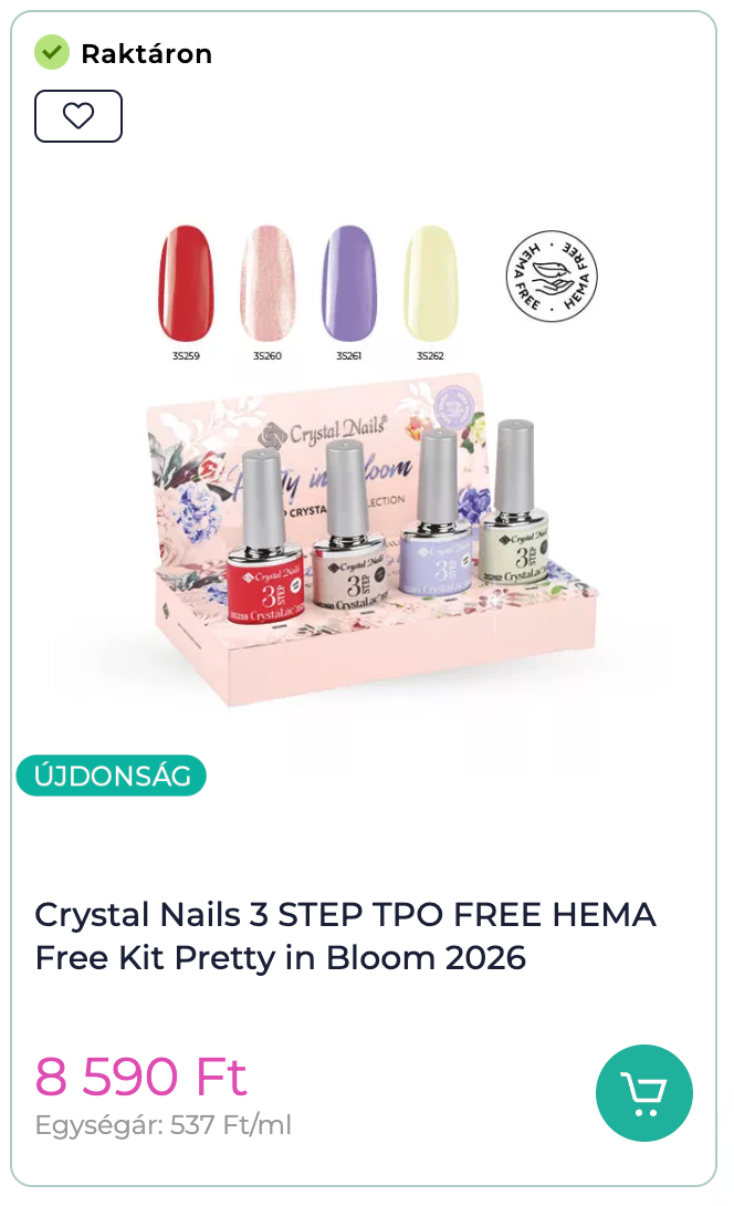 A Crystal Nails 2026 tavasz–nyár kollekció összes újdonsága már elérhető, így könnyedén beszerezheted a szezon legtrendibb színeit és termékeit.